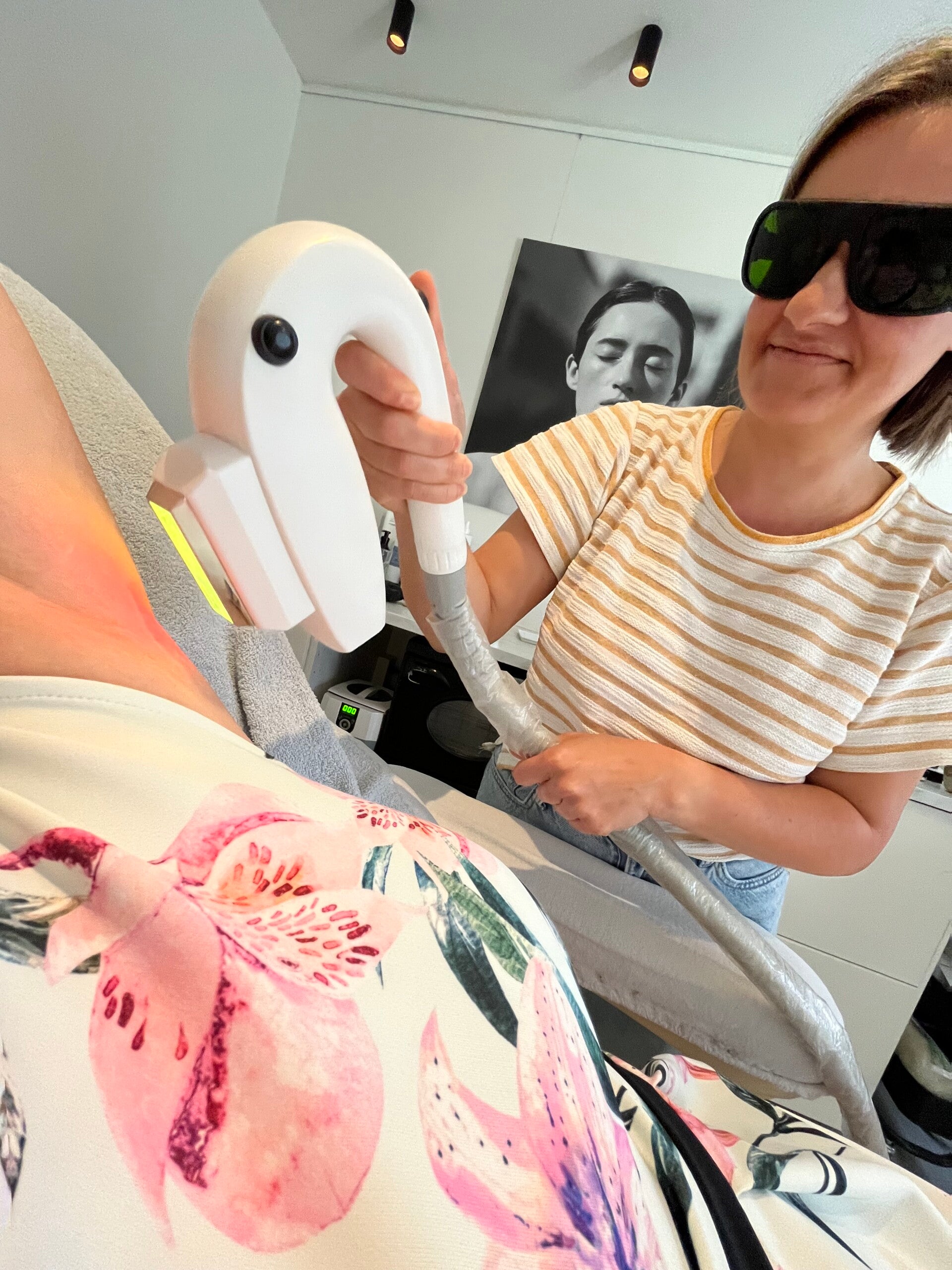 Omdat ik zelf een lichte zweetuitbraak kreeg als de kinderen plots het voorstel deden om te gaan zwemmen en ik al begon te denken aan de rode bulten na mijn haastige scheerbeurt, besloot ik om deze behandeling aan te bieden in het salon.